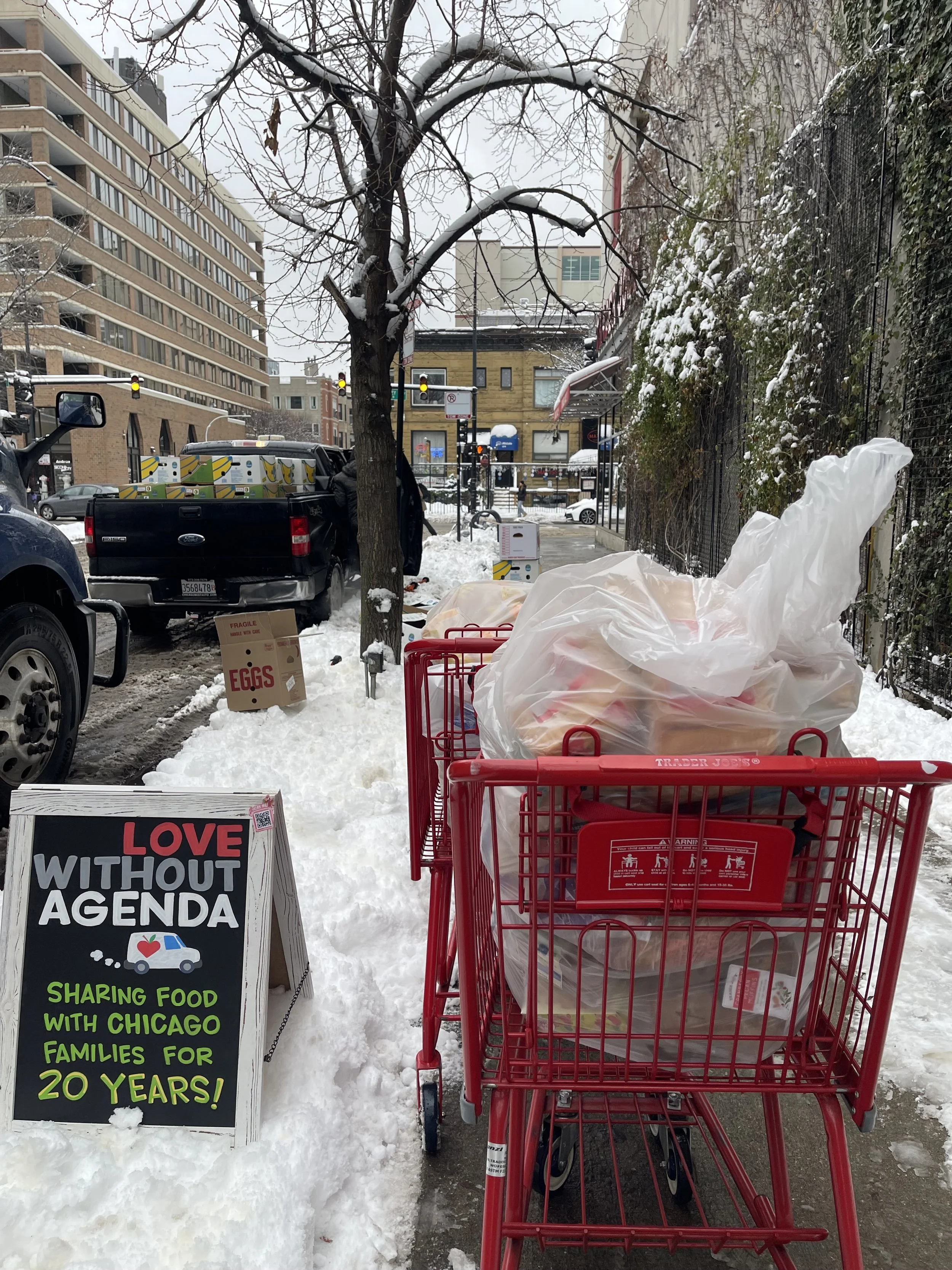 Partnership is an annual commitment of $1,200, toward Love Without Agenda’s direct work of coordinating safe food access for Chicago families.